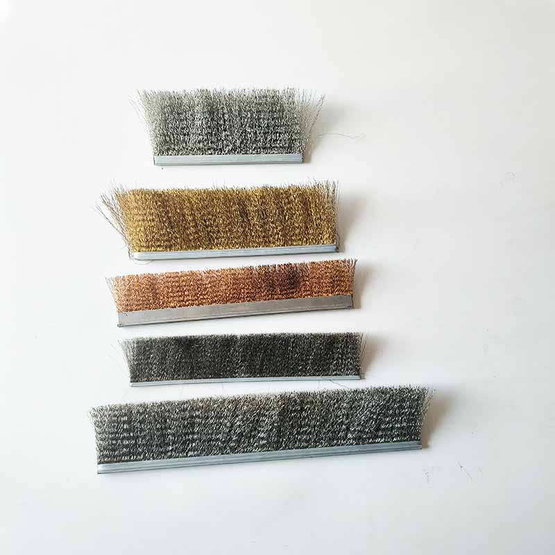 Stainless steel strip brushes can be used for a number of purposes in manufacturing and production environments. Stainless steel strip brushes feature a formable metal structural element known as the channel base and stainless steel wire brush fill that can be varied by trim length, density, and flexibility.we can support stainless steel wire, steel wire, brass wire, copper wire.